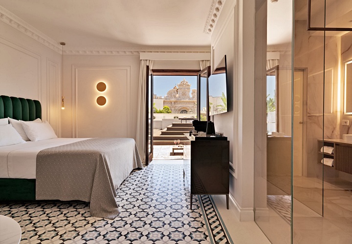 현대적인 대리석 욕실과 슈페리어 룸의 전용 테라스는 고전적인 건물 안에서 현대적인 쾌적함을 극대화합니다.