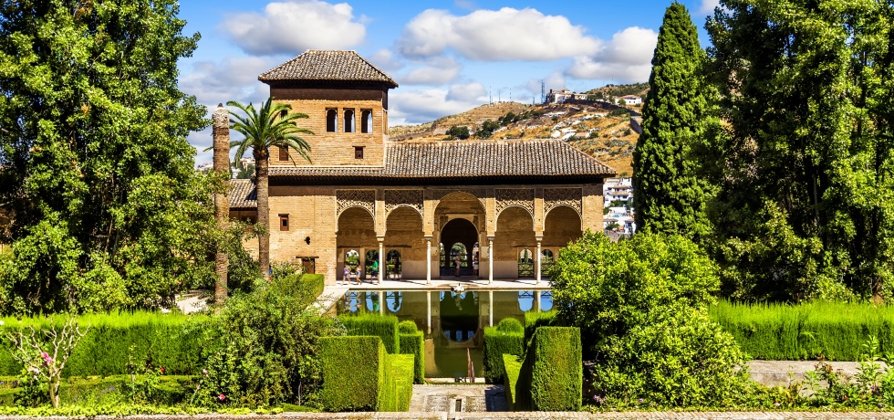 '수로의 중정'을 따라 길게 뻗은 분수와 계절마다 피어나는 꽃들이 조화를 이룹니다. 이슬람 조경 예술의 극치를 보여주며, 정원 높은 곳에서 바라보는 알람브라 성벽과 알바이신 지구의 전경은 그라나다 여행 중 가장 평온한 순간을 선사합니다.