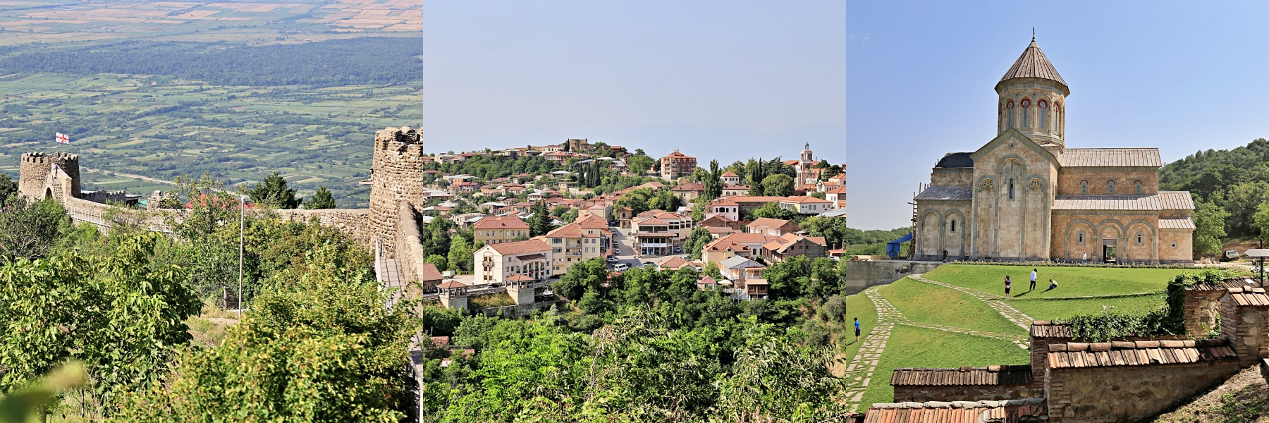 카헤티(Kakheti) 와인 산지의 언덕 위에 자리한 그림 같은 작은 마을입니다. '사랑의 도시(City of Love)'라는 별칭으로 불리는 이곳은 18세기 무렵 지어진 견고한 성벽으로 둘러싸여 있으며, 붉은 지붕과 파스텔 톤의 발코니가 있는 전통 건축물이 어우러져 유럽의 고풍스러운 마을 분위기를 물씬 풍깁니다.